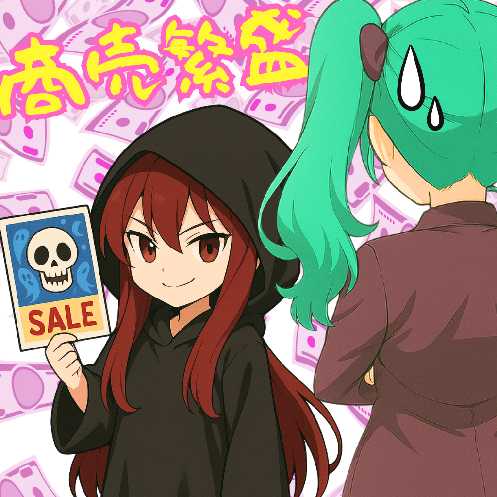 黒いフードつきマントを着た、赤髪の女の子がいる。