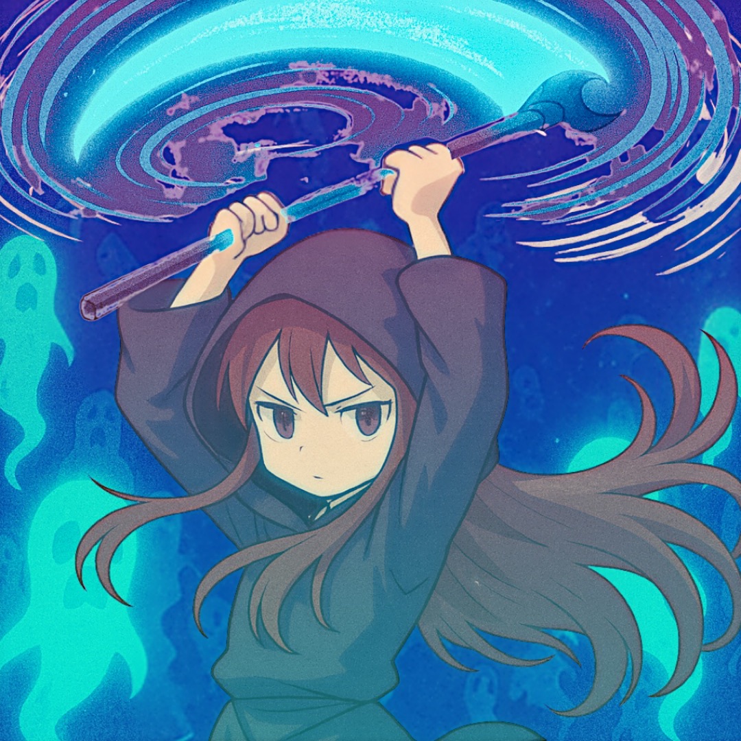 高速回転する鎌が青白く光り、死霊が集まってきた。
